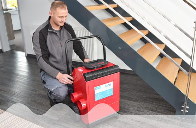 Mögliche Gründe für Wasserschäden sind zahlreich: neben Rohrbruch oder Heizungsdefekt können Leitungsverstopfungen oder auch eine leckende Waschmaschine Auslöser für die Durchfeuchtung von Decken, Wänden und Fußböden sein. RAPID bietet für jedes Anforderungsprofil entsprechend leistungsstarke und mit Betriebsstundenzählern ausgestattete Trocknungsgeräte. Diese erfüllen neueste technische Ansprüche und sind sowohl leistungsfähig als auch geräuscharm und energieeffizient. Der Trocknungsprozess wird kontinuierlich gemessen und im Sinne ständiger Transparenz dokumentiert.